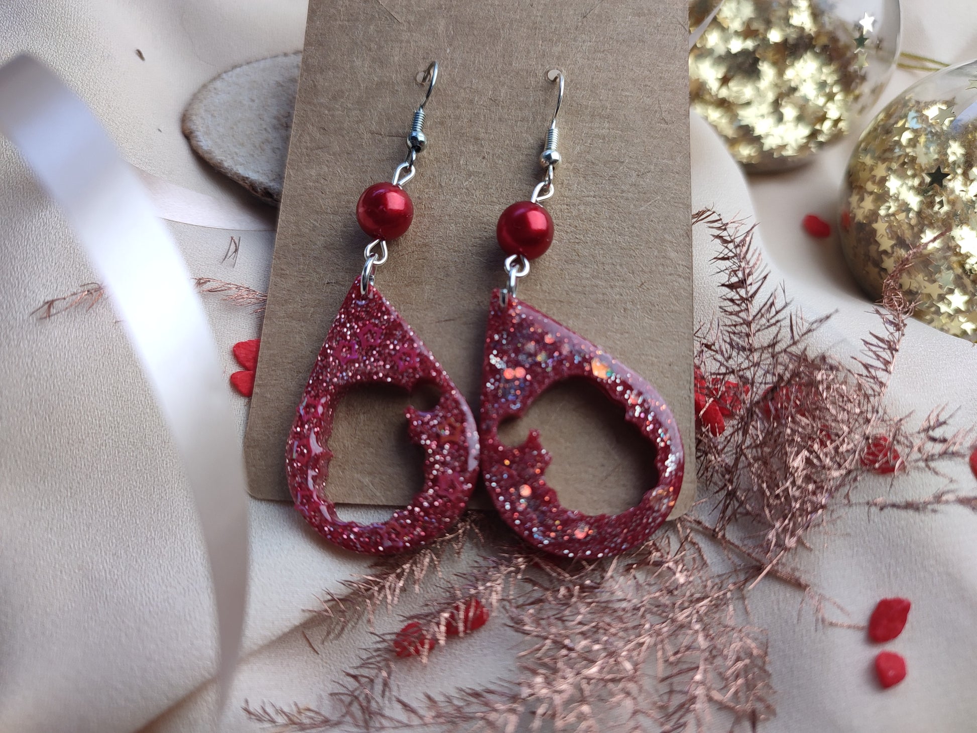 Incarnez la magie des fêtes avec ces boucles d'oreille père noël pendantes, confectionnées à la main avec soin. Leur rouge éclatant parsemé de paillettes crée un effet scintillant qui capte la lumière à chaque mouvement. Parfaites pour ajouter une touche festive à votre tenue de saison, ces accessoires originaux expriment votre esprit de Noël avec élégance. Un cadeau idéal pour les amoureux de bijoux uniques et de créations artisanales.