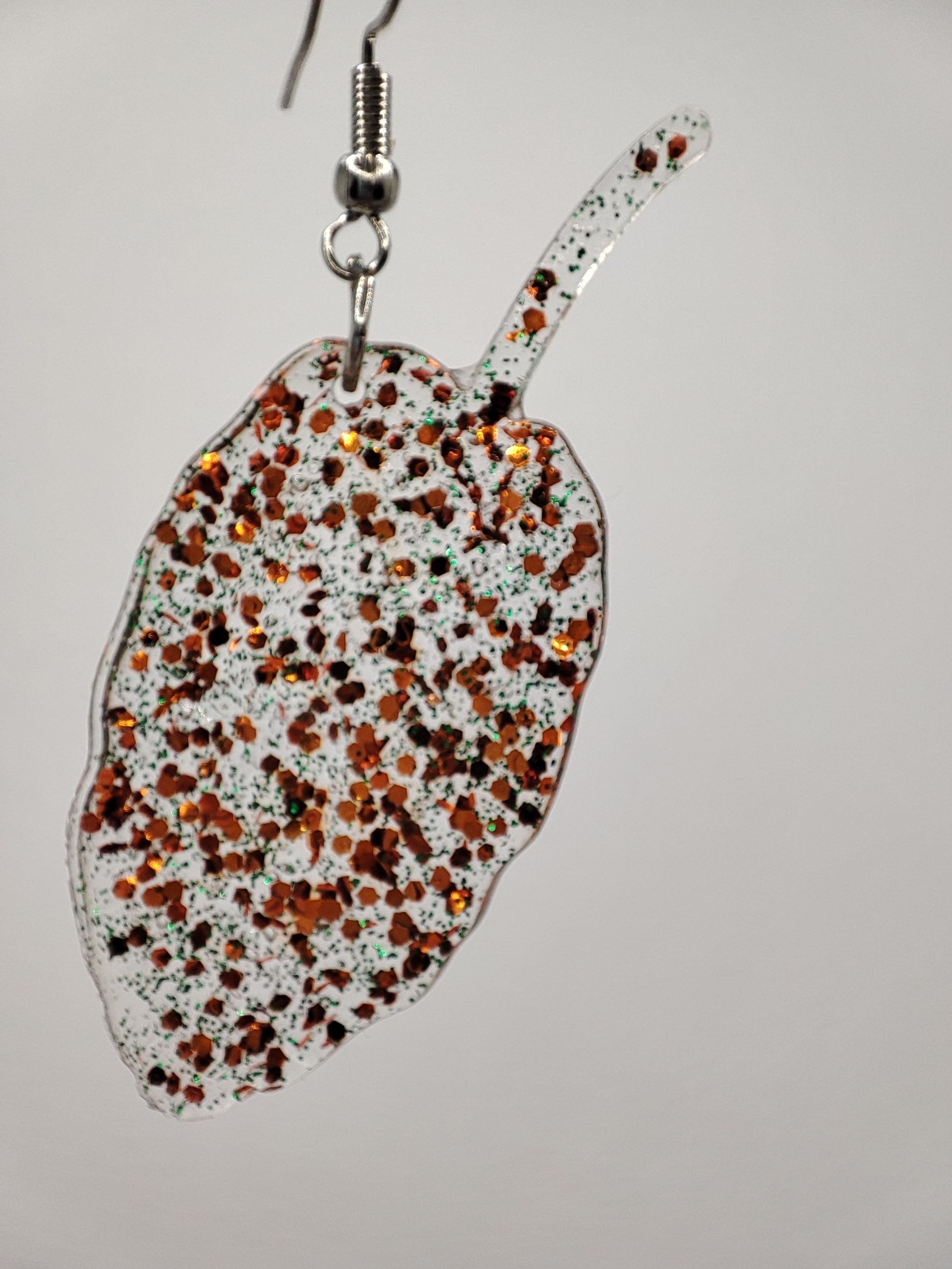Découvrez l'élégance délicate de ces boucles d'oreilles légères en forme de feuille d'automne. Réalisées en résine UV transparente, elles captent la lumière grâce à de subtiles paillettes intégrées, offrant une touche scintillante unique à chaque mouvement. Leur design original et leur finesse en font un accessoire incontournable pour sublimer votre style avec naturel et légèreté. Un modèle unique qui célèbre la beauté éphémère de l'automne.