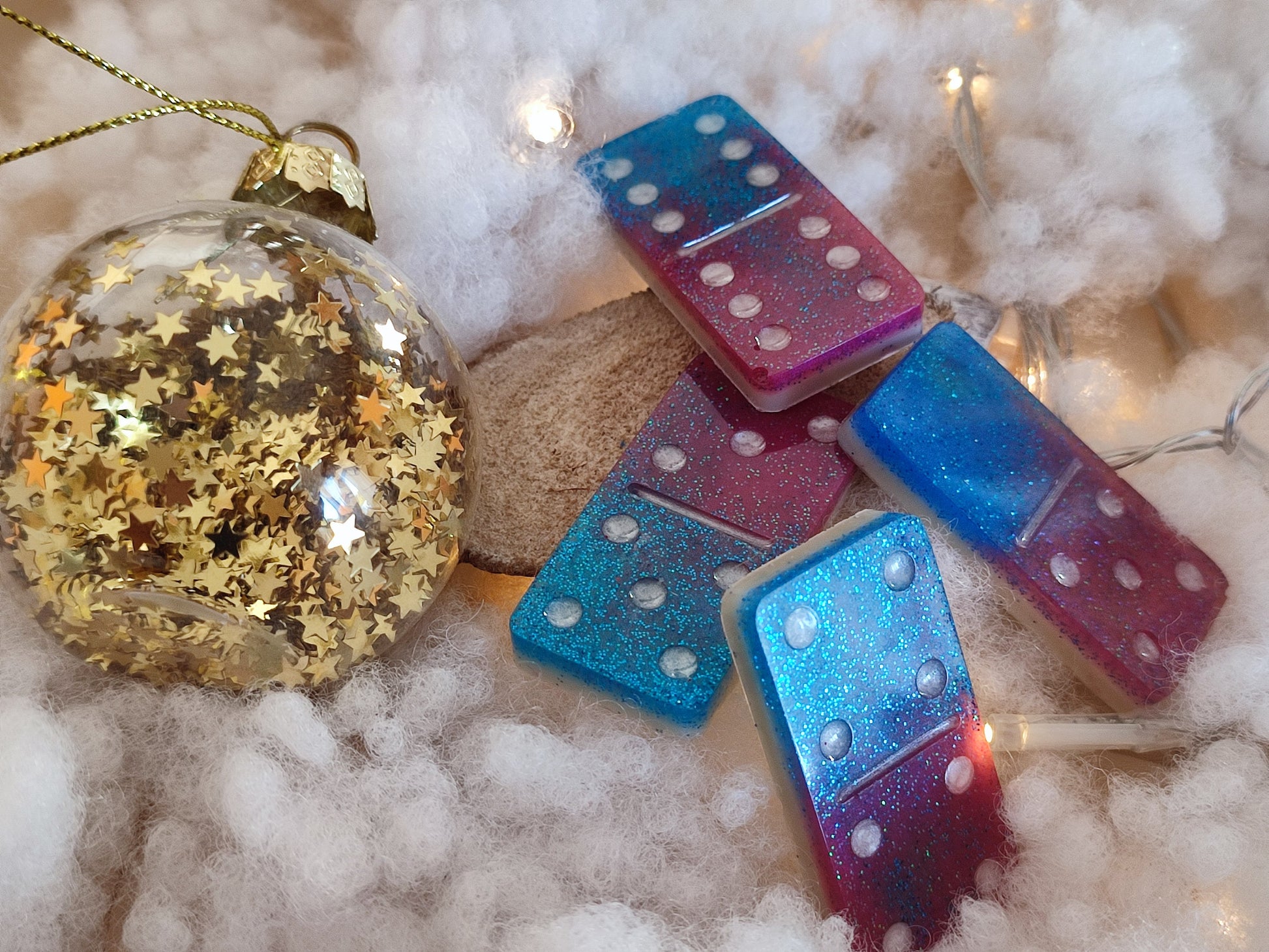 Découvrez notre jeu de dominos artisanal, confectionné avec soin pour apporter une touche festive à vos moments en famille. Ses teintes de fêtes éclatantes transforment chaque partie en véritable célébration. Livré dans une élégante pochette en velours bleu, ce jeu fait main constitue un cadeau raffiné et original. Parfait pour les réunions entre amis ou les soirées en famille, il allie tradition ludique et esthétique contemporaine.