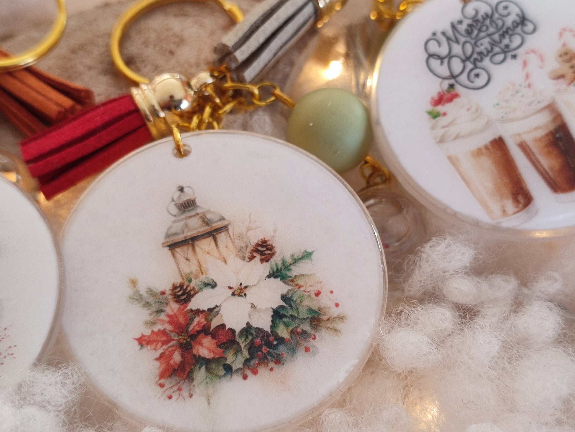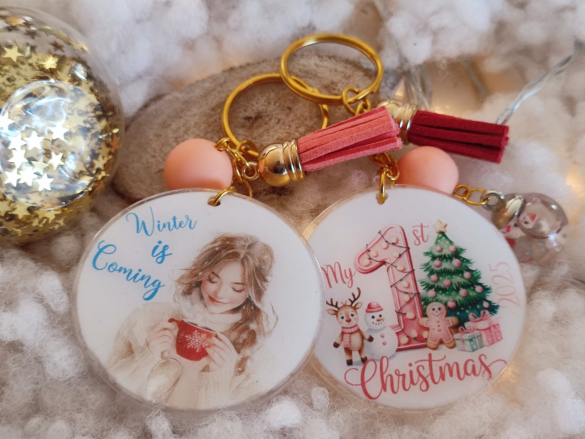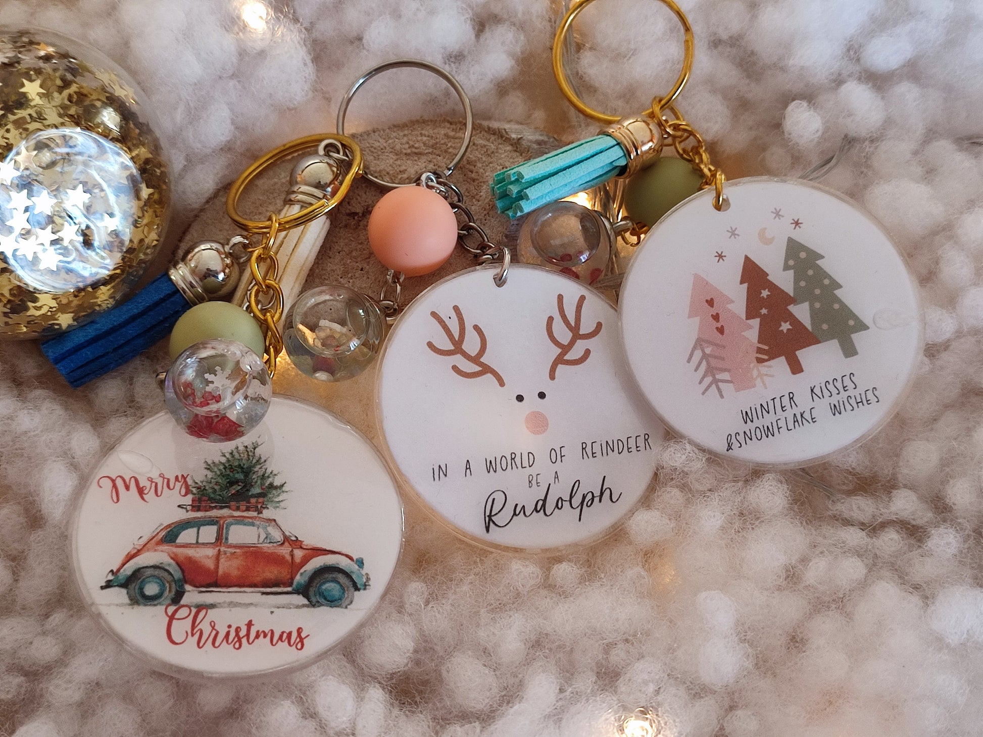 Porte-clés de Noël au charme rétro qui capture la magie des fêtes. Orné d'une breloque ronde et de délicates boules à neige, ce petit accessoire apporte une touche festive à vos clés au quotidien. Son design vintage intemporel en fait un cadeau parfait pour les amateurs de décoration nostalgique. Pratique et élégant, il transforme un objet du quotidien en véritable pièce de collection.